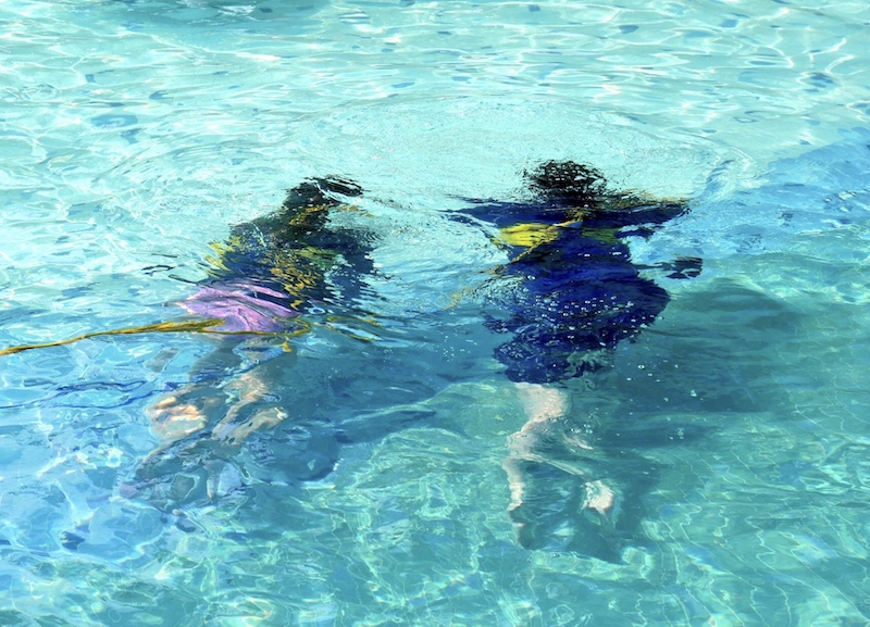 We entered the ocean as a foursome. Me, the instructor, and my two kids. I concentrated on Charlie who is 8 and helped her safely get to the reef. When I arrived, I was surprised to see my 10-year-old had beat me to it. He looked exceptionally comfortable under the water and both kids eagerly began swimming. Our SNUBA guide checked to make sure everyone was okay, went over our hand signals, and then led us forward.
